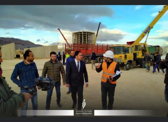 المهندس عادل العلبي محافظ دمشق رئيس مجلس إدارة شركة دمشق الشام القابضة، اليوم من القائمين على العمل خلال زيارته للموقع لشرح عن مراحل تجهيز وتركيب المجبل وتجهيزاته الميكانيكية، ولفَتَ الفنّيون إلى أنه يتم على تجهيز مجبلين بيتونيين ومعملي بلوك وكلها منشآت إنتاجية حديثة و متكاملة وبصناعة وطنية بامتياز وبطاقة إنتاجية عالية وهو ما من شأنه أن يساهم في تقديم المجبول البيتوني ومواد البناء المختلفة وفق أعلى المواصفات الفنية القياسية بما يتوافق مع المستلزمات المعمارية للمشروع.