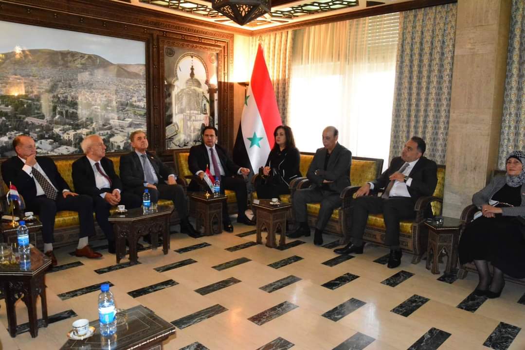 جاء ذلك خلال اجتماع مجلس ادارة غرفة تجارة دمشق مع وفد جمهورية الباراغوي، في مقر الغرفة وبحث فرص وآفاق التعاون الاقتصادي والتجاري وسبل تمتين العلاقات بين البلدين في المجالات كافة و تفعيل دور قطاع الاعمال في هذا المجال بما يعود بالنفع على شعبي سورية والباراغوي.