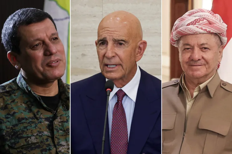 اجتمع المبعوث الأميركي الخاص إلى سوريا توم براك مع القائد العام لقوات قسد مظلوم عبدي ورئيس الحزب الديمقراطي الكردستاني مسعود بارزاني.
